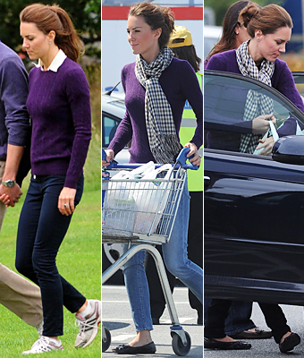 The Duchess chose to wear her favourite purple crewneck sweeter yet again, this time during her grocery run. She was also seen in the same during another one of her grocery runs and while taking a walk with the prince. You have got to love a duchess who doesn't shy away from repeating outfits!!